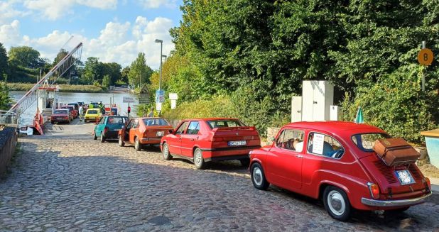 Warten auf die Fähre - auch 5x Fiat 127 waren dabei, im August 2024